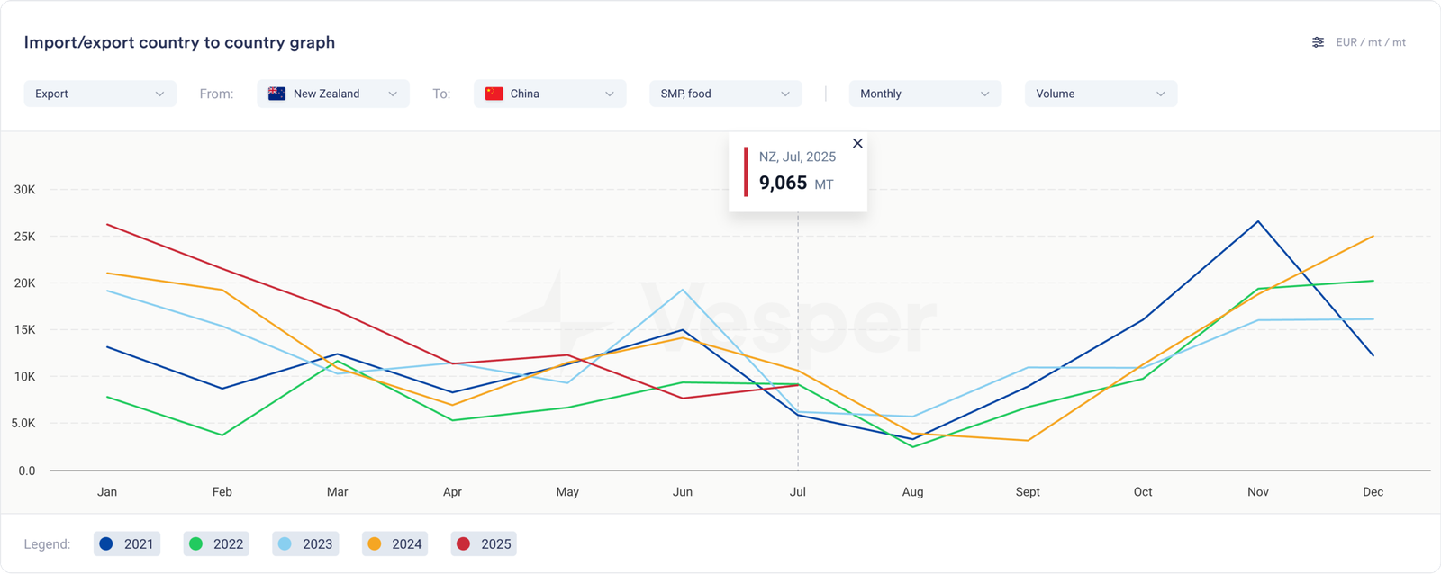 كانت التجارة بين نيوزيلندا والصين نشطة نسبيًا هذا العام التقويمي، لكنها تباطأت في شهري يونيو/يوليو. من الرائع تمامًا أن الصين تمكنت من استيراد هذا القدر من SMP دون التسبب في مشهد، مما يوضح أيضًا مدى ضعف سوق SMP في الواقع.