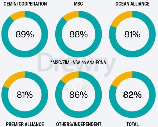 - طرق آسيا – أمريكا(63٪، كانت 58٪)