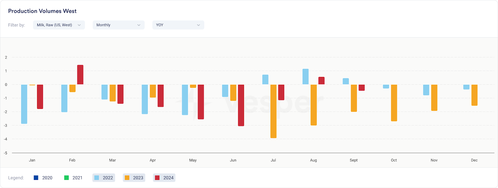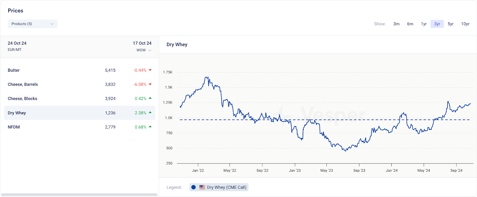 • والبارز:مصل اللبن المجففأعلى بمقدار 13 سنتًا من متوسطه ​​لمدة 3 سنوات. في حين أن هذا قد لا يبدو دراماتيكيًا، إلا أنه يمثل قفزة بنسبة 27٪، مما يجعل مصل اللبن المجفف المنتج صاحب أكبر فرق نسبي مقارنة بمتوسطه ​​طويل الأجل.