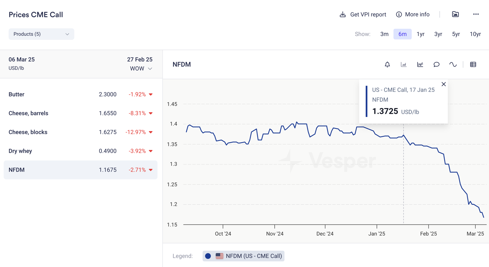 هذه هي، التعريفات الجمركية التجارية على الواردات الكندية والمكسيكية التي أُعلنت في اللحظة التي تولى فيها الرئيس الحالي للولايات المتحدة منصبه. وقد حدثت أعمال انتقامية أيضًا، كما كان متوقعًا. قبل أن نناقش السياسة في تحديث سوق الألبان، دعونا نلقي نظرة على ما حدث في CME Call هذا الأسبوع.