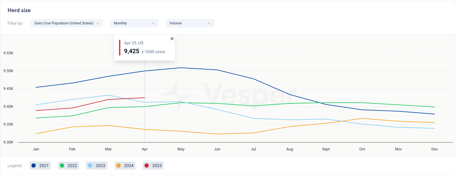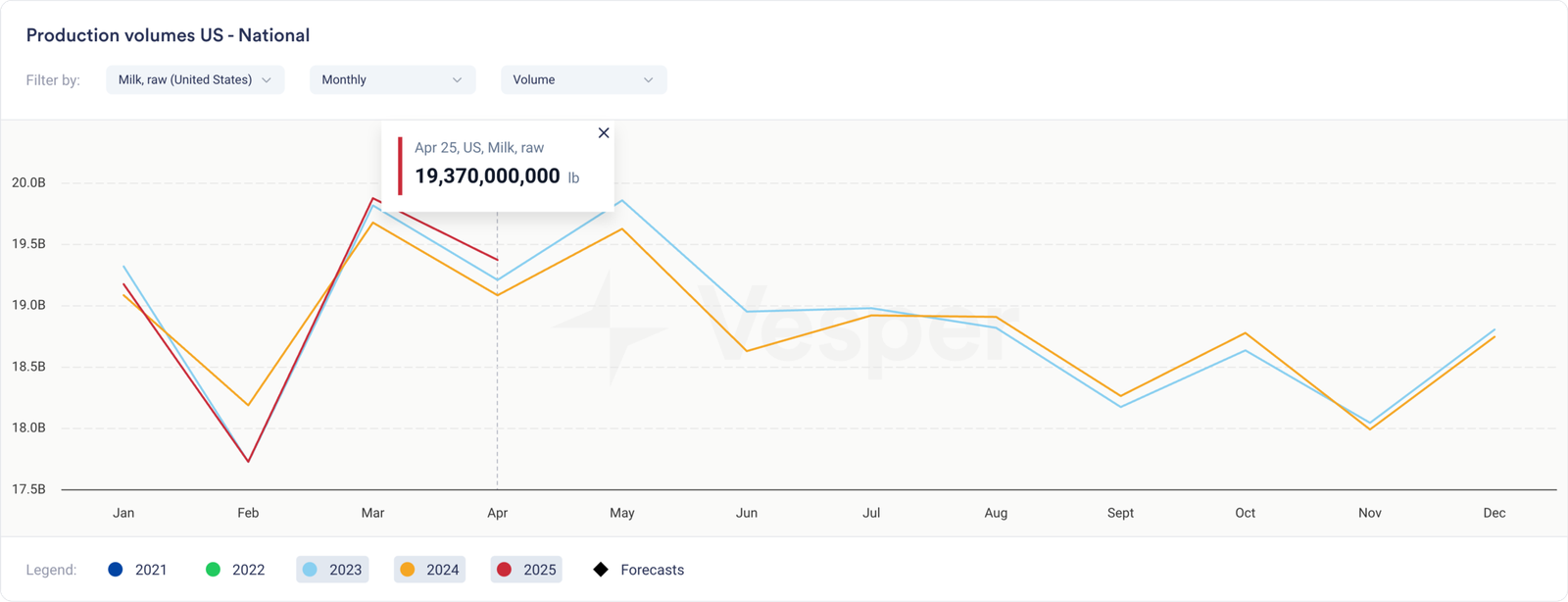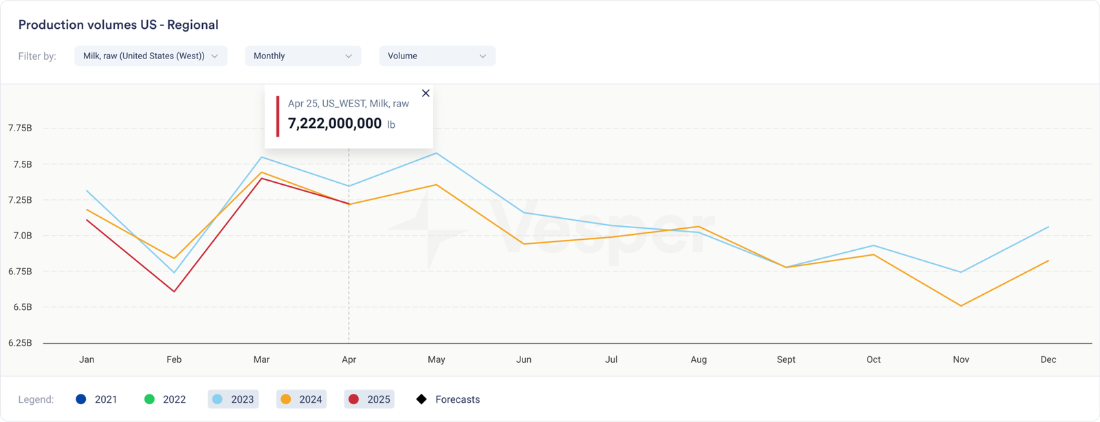 تشهد أحجام إنتاج الحليب في الولايات المتحدة نموًا على مستوى البلاد، بزيادة سنوية قدرها 1.51٪. يتماشى هذا مع معدل النمو المتوقع بناءً على الأشهر السابقة. كالعادة، ومع ذلك، هناك الكثير يحدث تحت الغطاء الذي يجب أن نتعمق فيه!