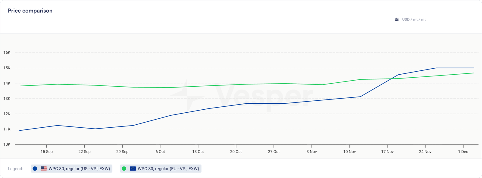 لا يزال WPC80 ضيقًا للغاية. تجاوزت الأسعار الأمريكية الآن المستويات الأوروبية، والتعليقات الواردة من المشترين لا تتعلق بالتبديل إلى موردين لالتقاط المراجحة. يتعلق الأمر بالامتنان لتأمين المنتج على الإطلاق.