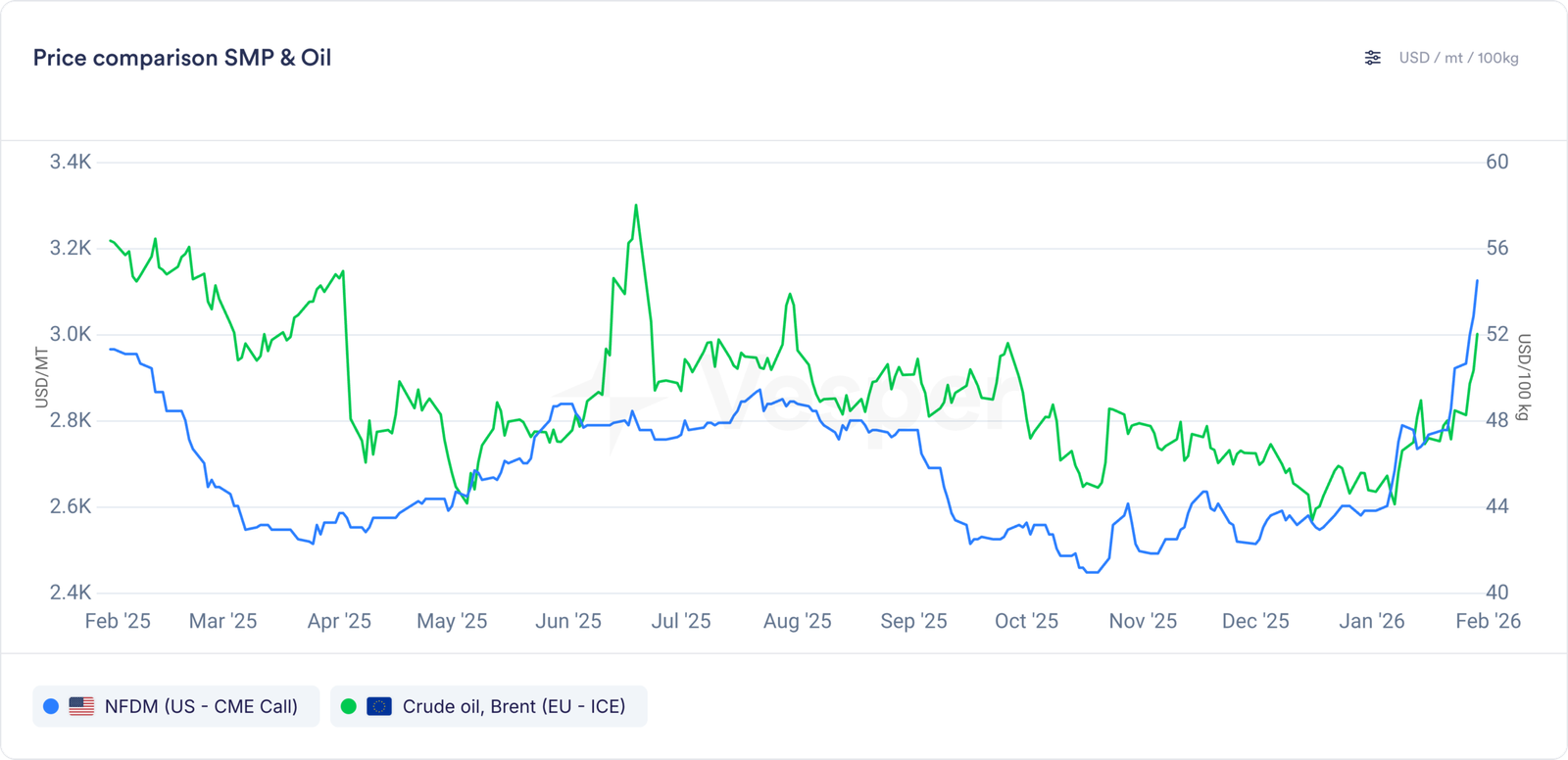 أكدت الطبيعة العالمية لمساحيق الحليب أن الأسعار في جميع الأسواق ارتفعت بسرعة. تحولت المراكز إلى فروق أسعار مقابل أسواق أخرى، والتي من المرجح أن تقرب الأسعار في جميع الأسواق الثلاثة من بعضها البعض على مدار الأسابيع المقبلة. السؤال الآن هو: هل سيكون ذلك حول السعر الحالي لـ NFDM البالغ 3125 دولارًا أمريكيًا للطن المتري أم بالقرب من سعر SMP الأوروبي البالغ 2640 دولارًا أمريكيًا للطن المتري؟